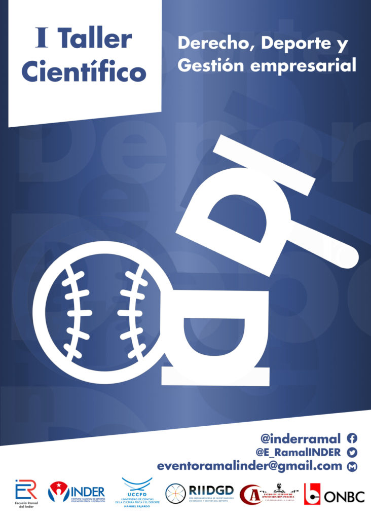 La Red Iberoamericana de Investigadores en Derecho y Gestión del Deporte (RIIDGD) coauspició el I Taller Científico Derecho, Deporte y Gestión Empresarial que organizaron la Escuela Ramal y la Dirección Jurídica del Instituto Nacional de Deportes, Educación Física y Recreación (Inder) en La Habana los días 10 y 11 de mayo.